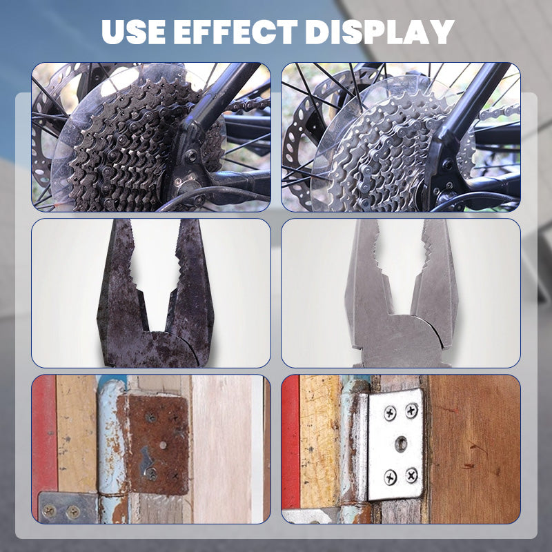 ELIMINADOR DE ÓXIDO DE ACCIÓN RÁPIDA : Disuelve rápidamente el óxido y la corrosión, restaurando las superficies y alargando la vida de sus herramientas y equipos.
