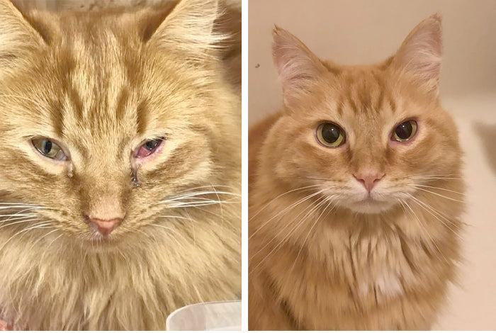 "My orange boy had FHV last year—eyes so swollen he couldn't open them. After three days with these drops, the swelling went down. Now I use it daily, one 60ml bottle lasts about four months, and he hasn't had a flare-up in six months."